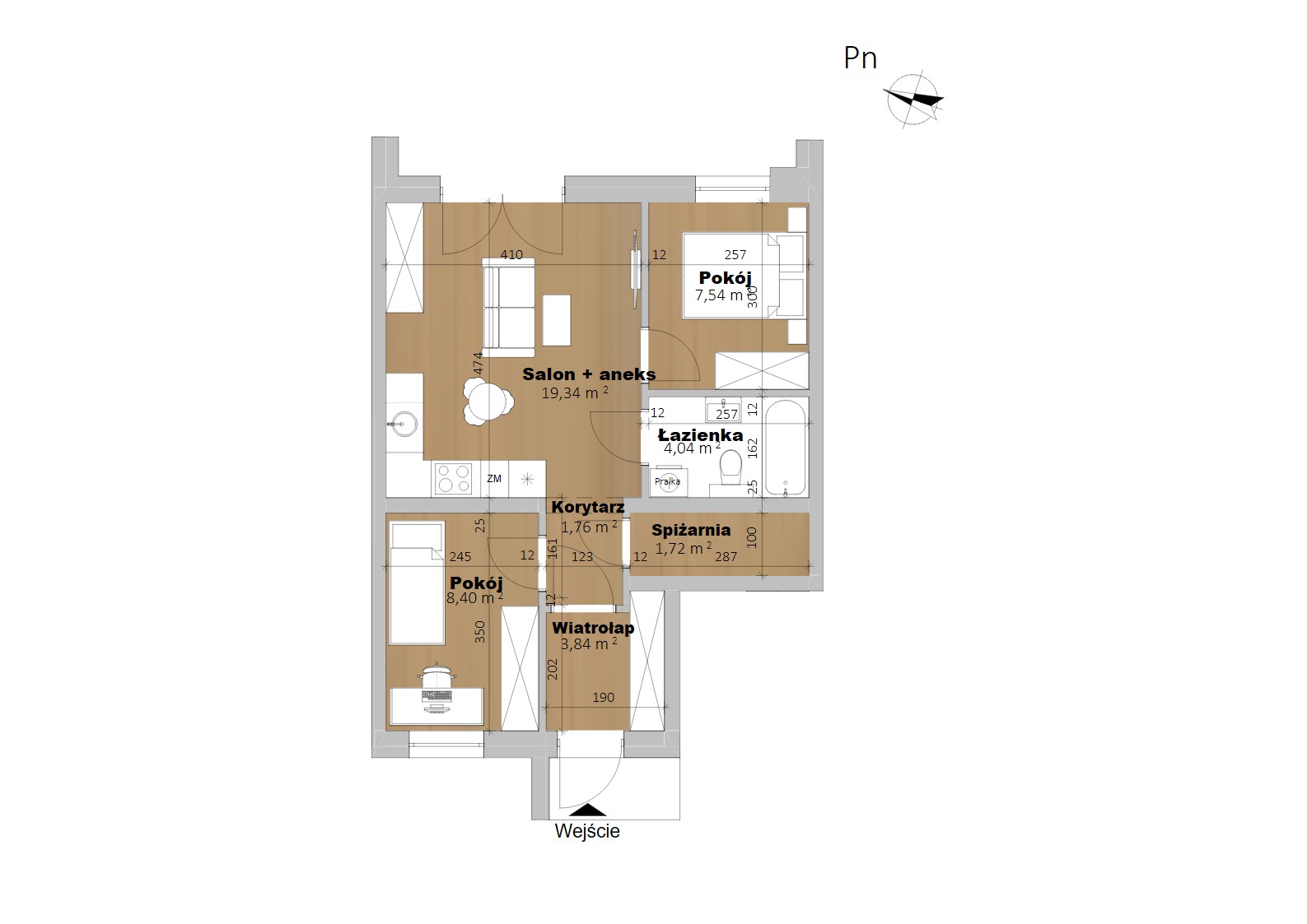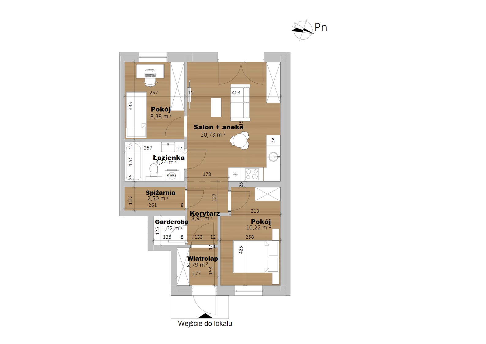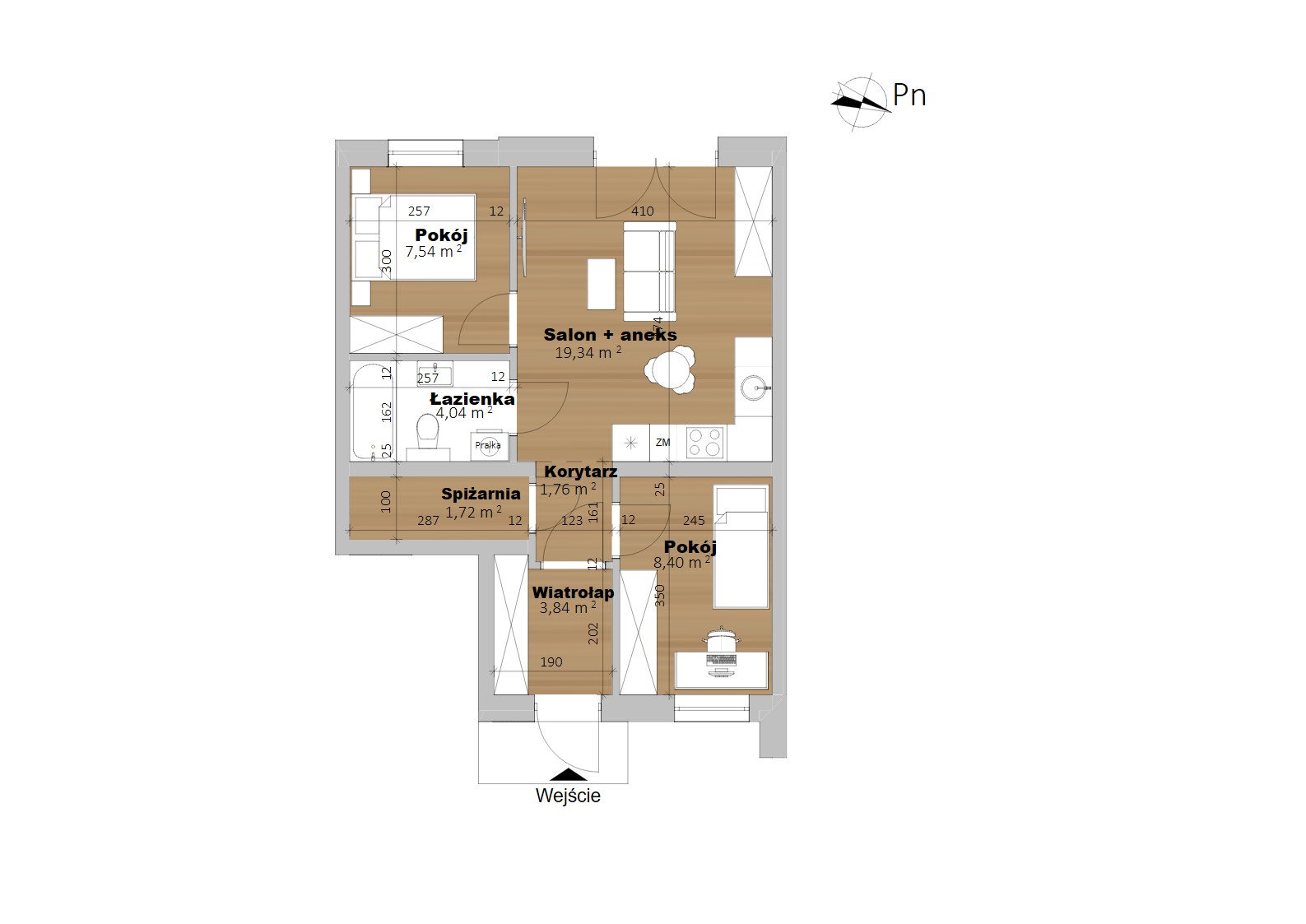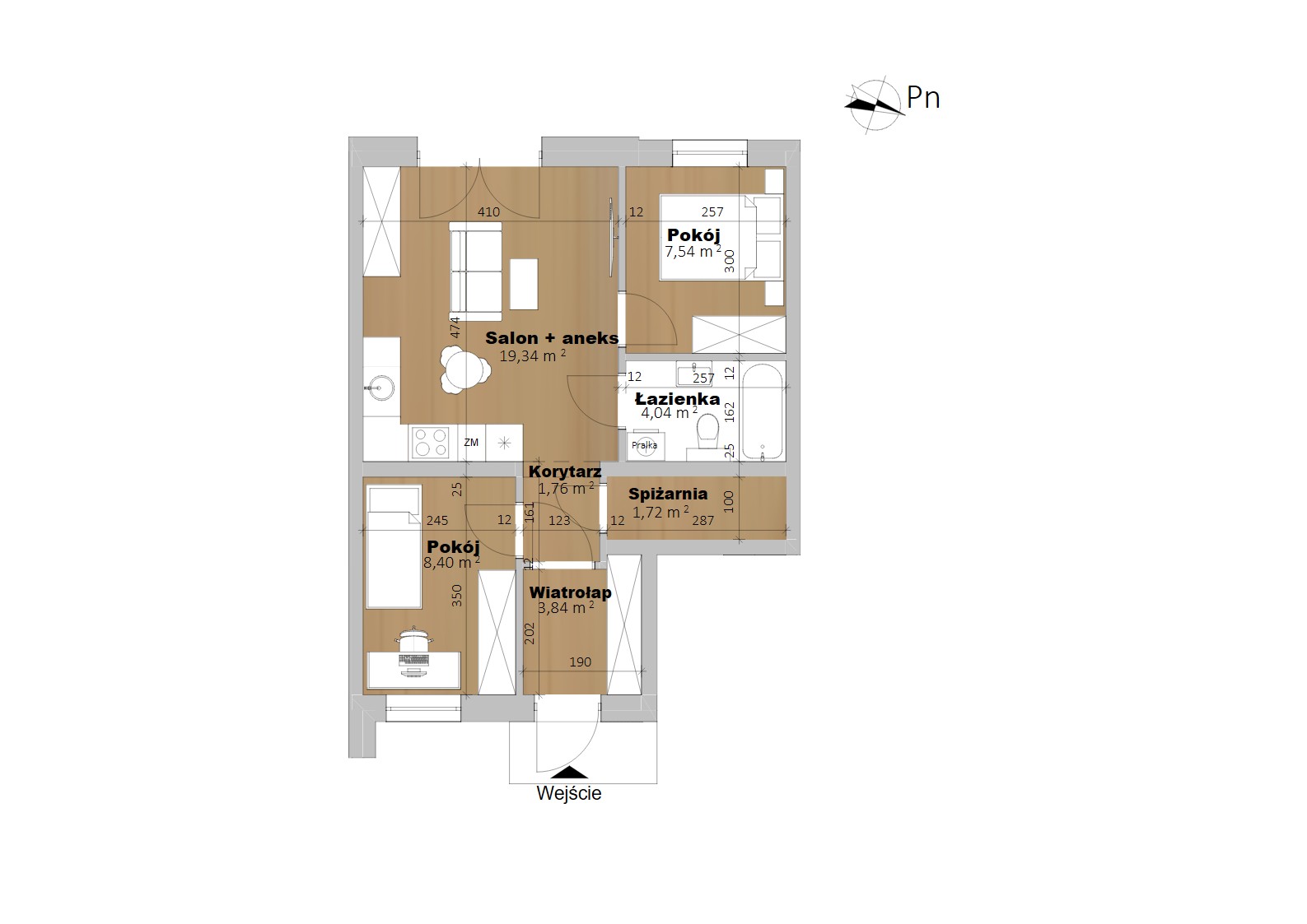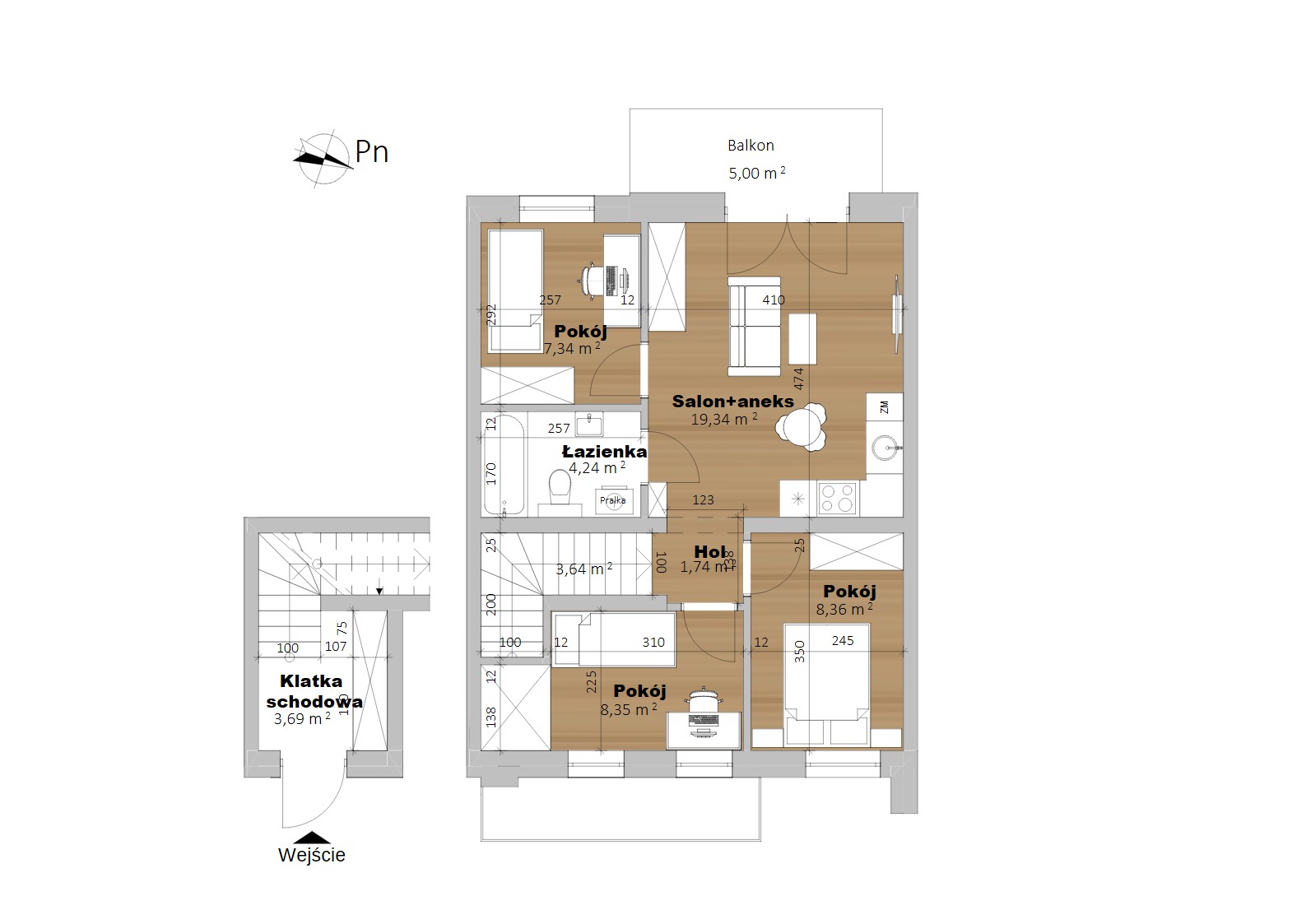 • możliwość elastycznej zmiany układu pomieszczeń z 4-pokojowego na 3-pokojowy