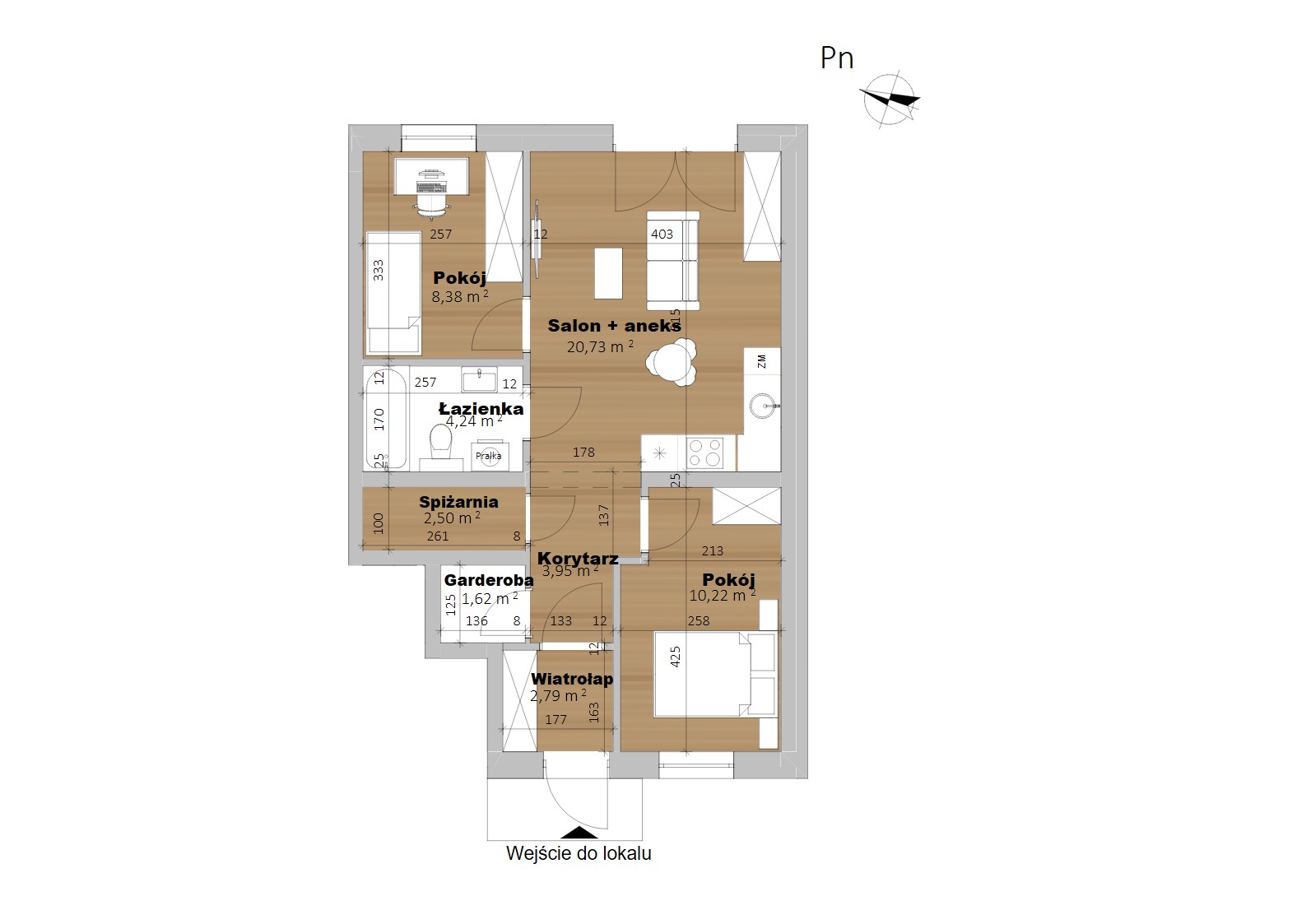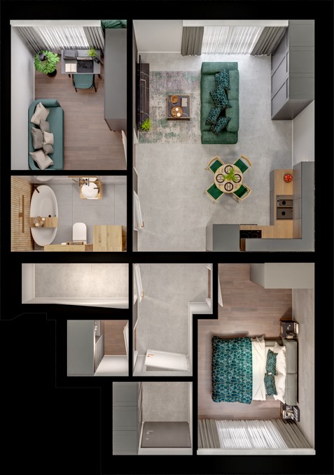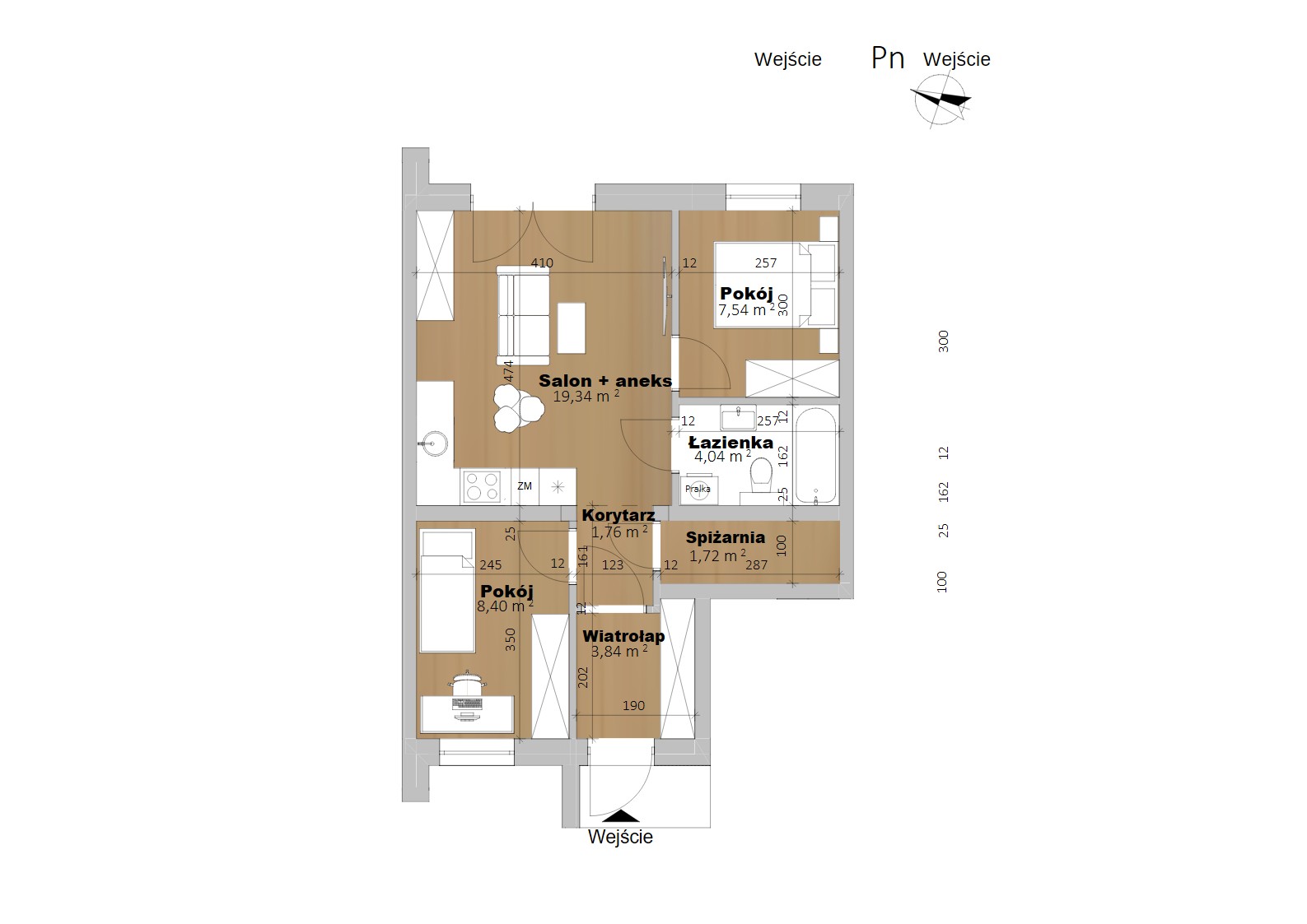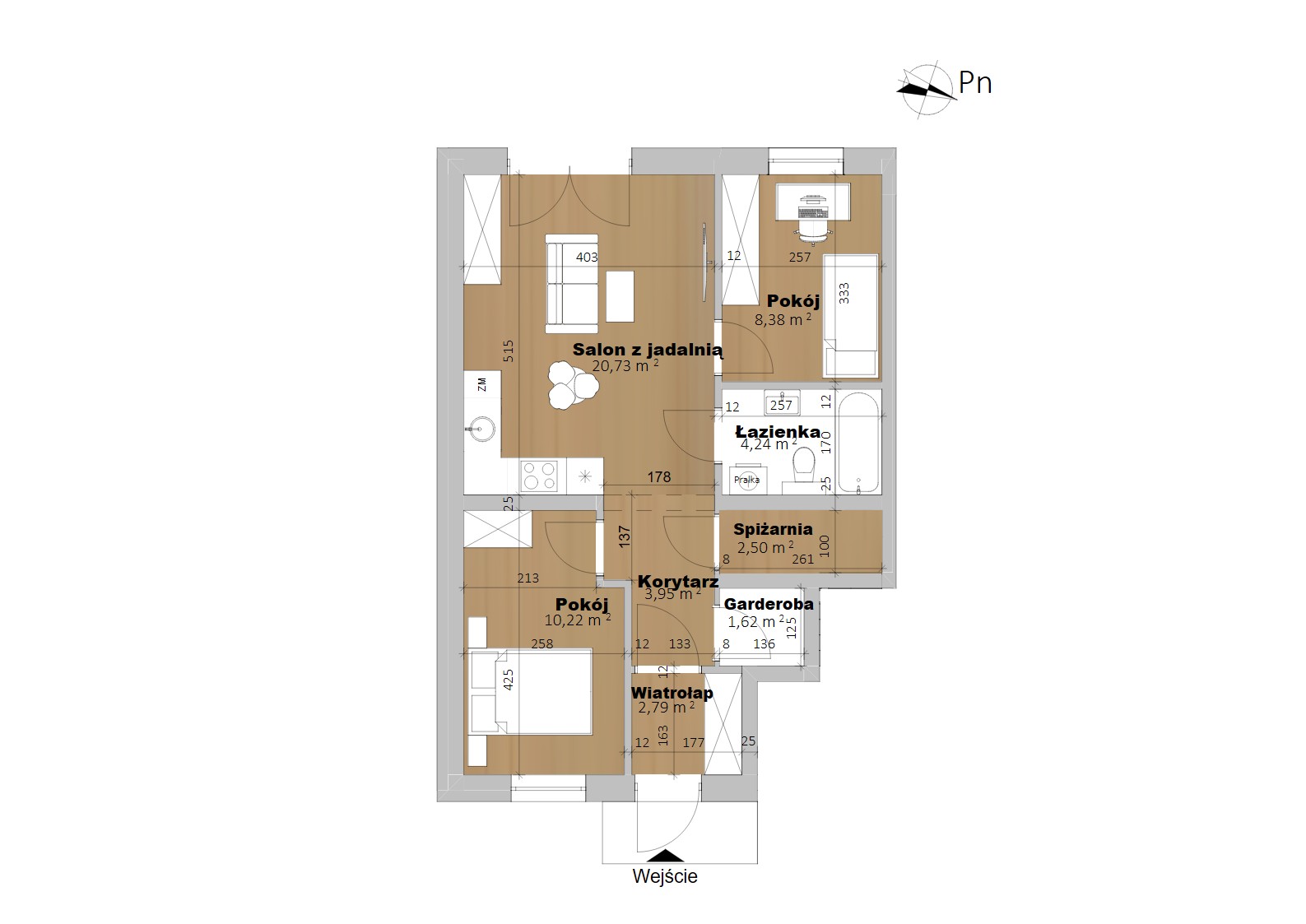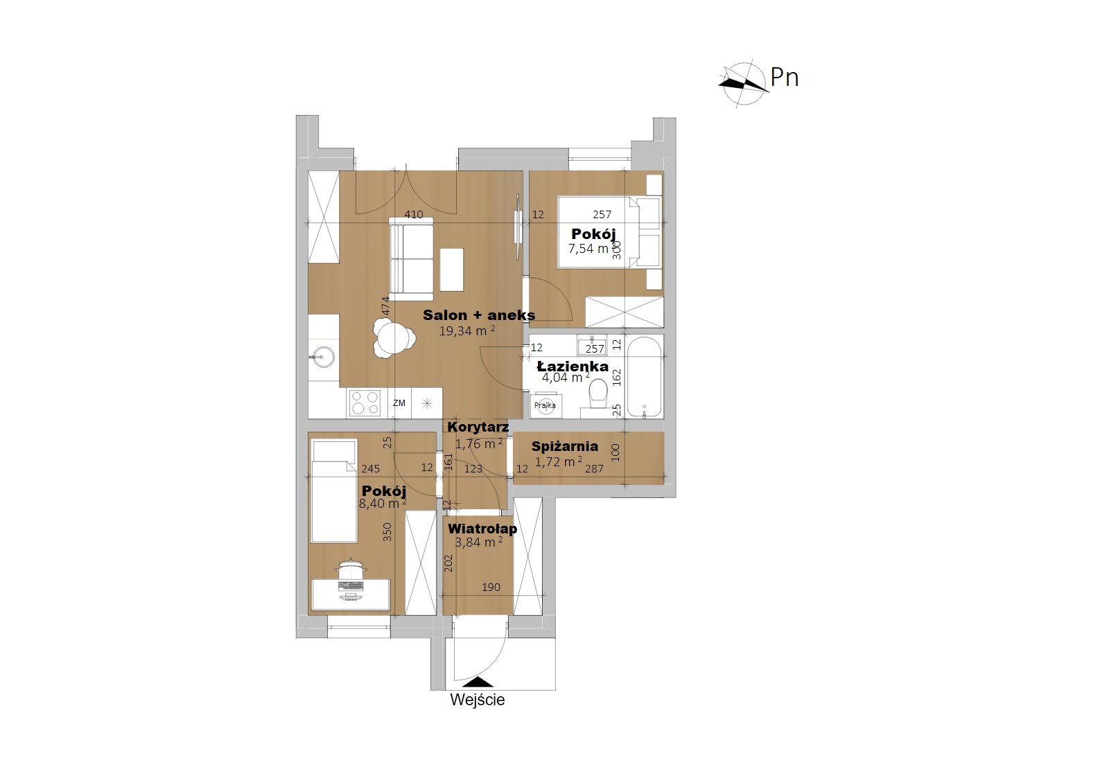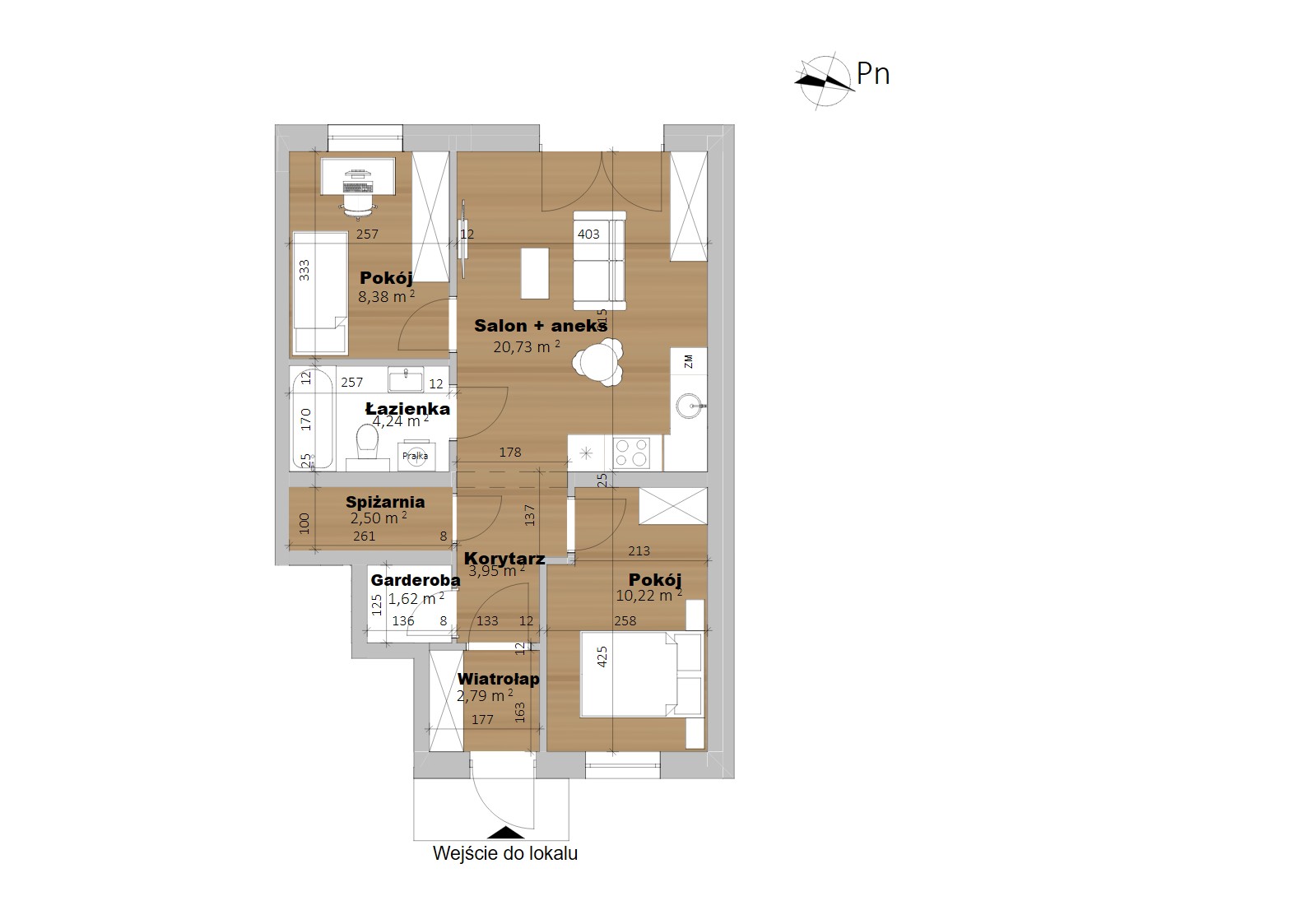 • możliwość elastycznej zmiany układu pomieszczeń z 4-pokojowego na 3-pokojowy