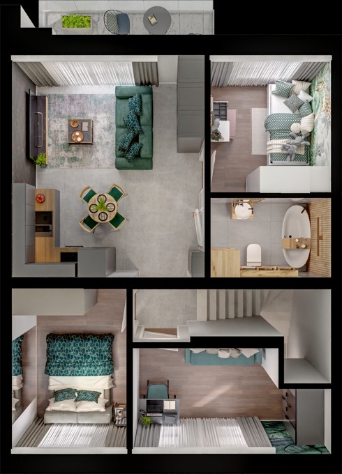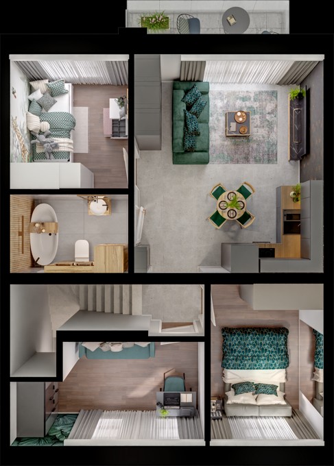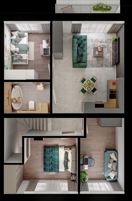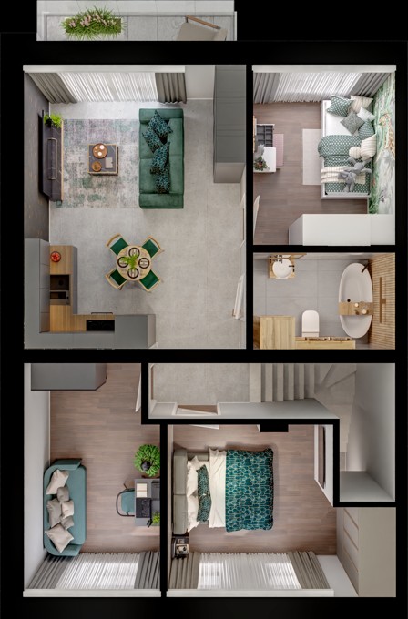 Na parterze z ogródkami - wyjście prosto z salonu na trawnik, miejsce na grilla, leżaki lub własne warzywa. Twój dom to miejsce odpoczynku, oaza, do której chcesz wracać po ciężkim dniu.