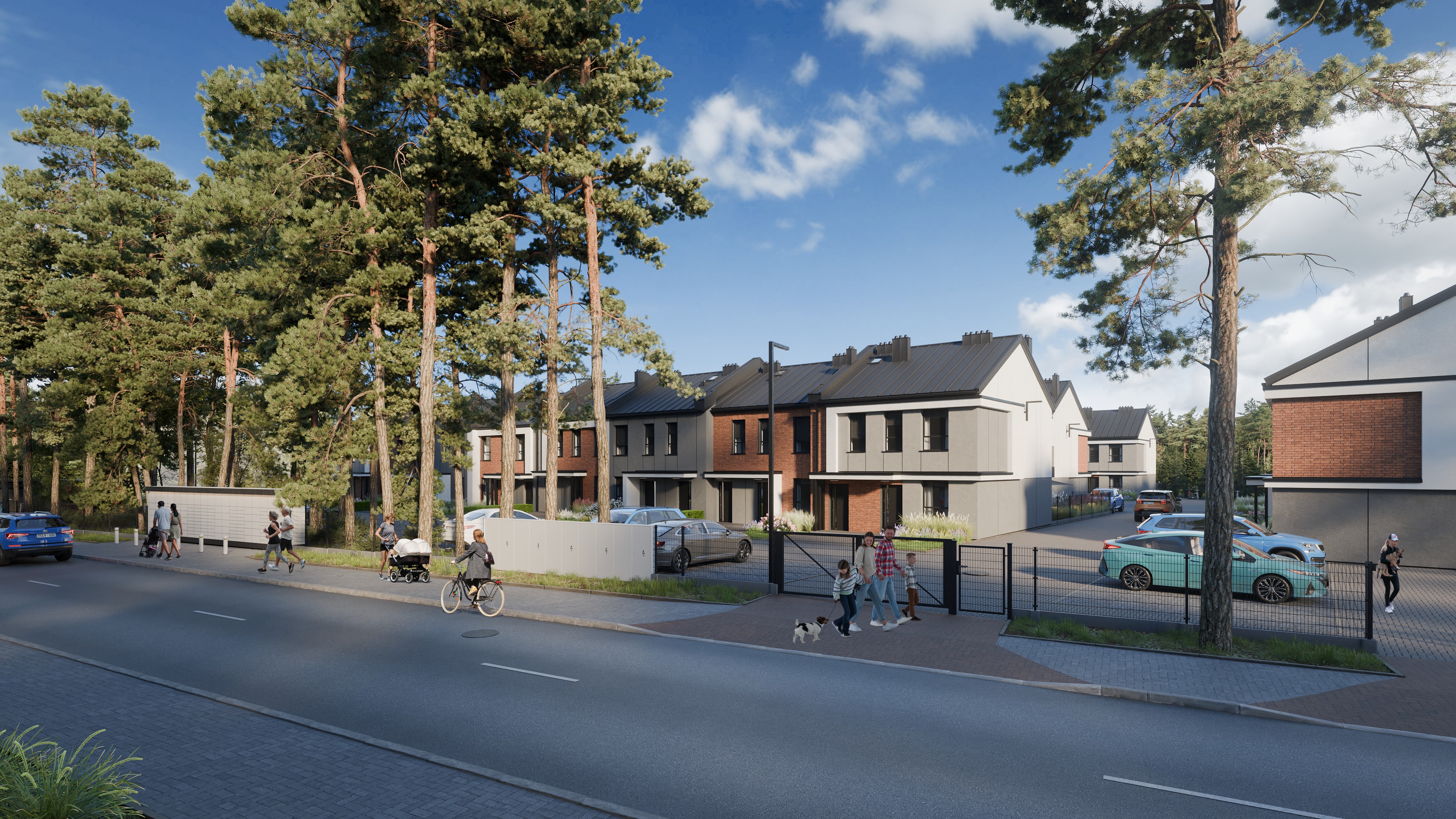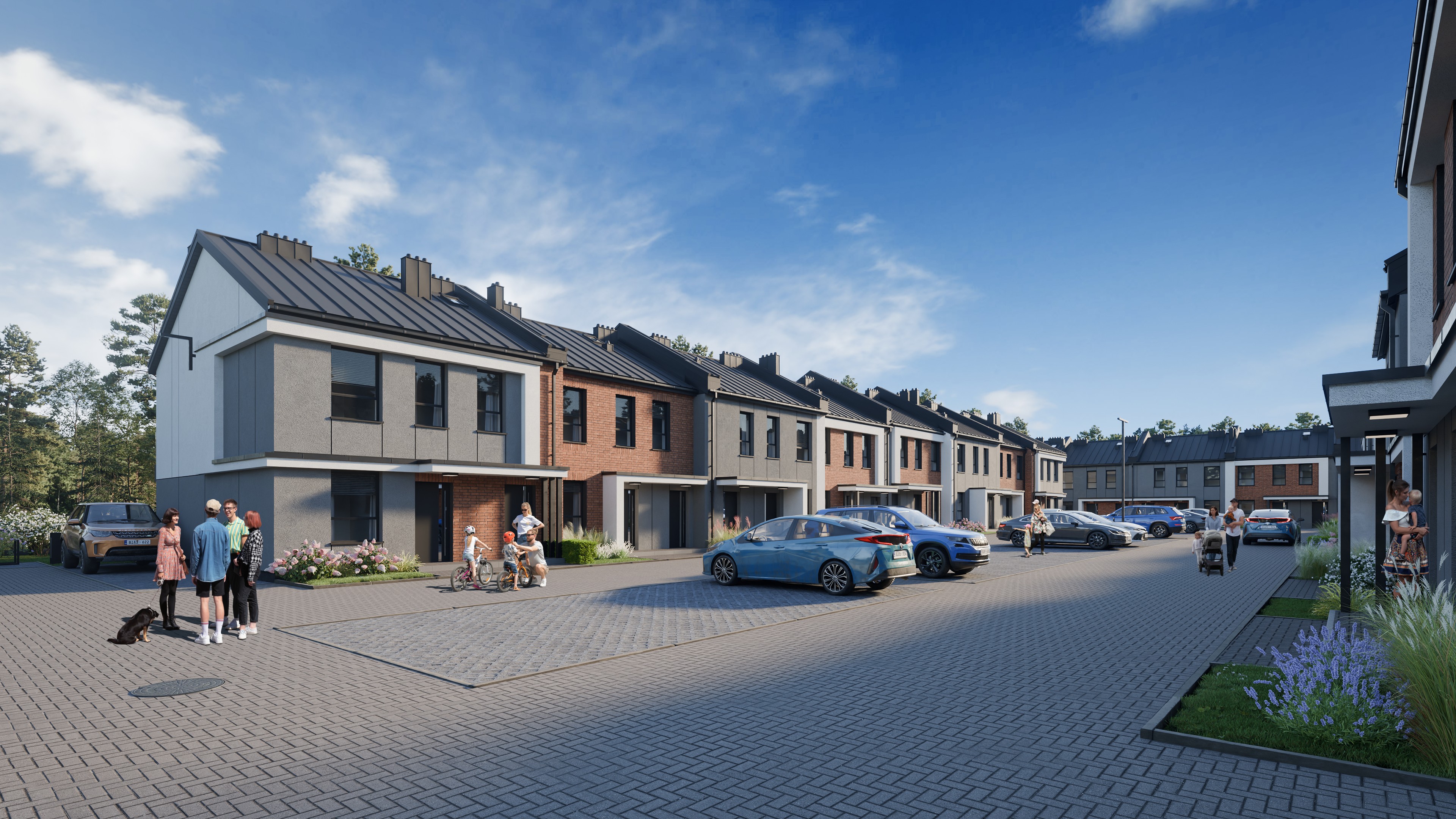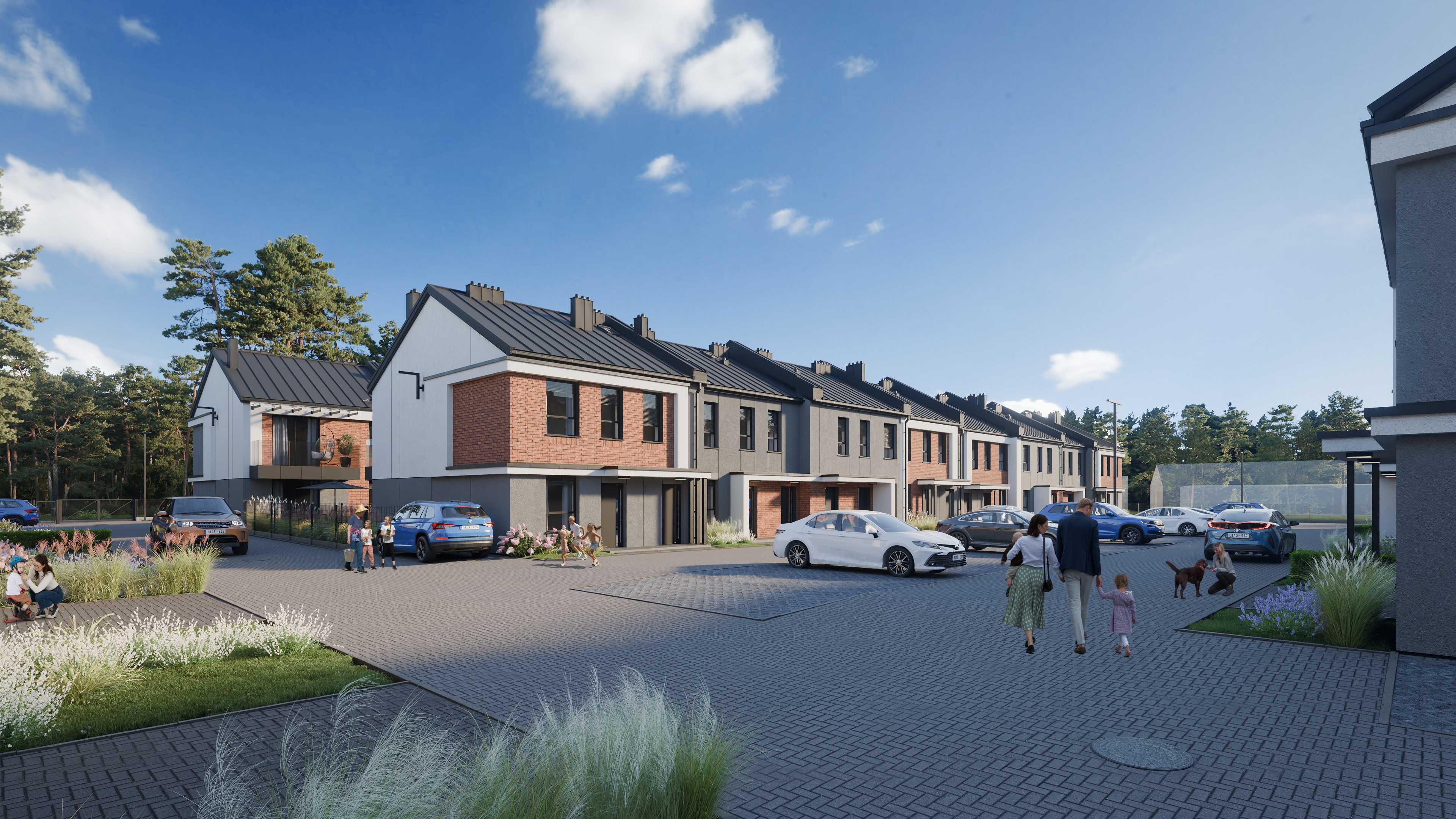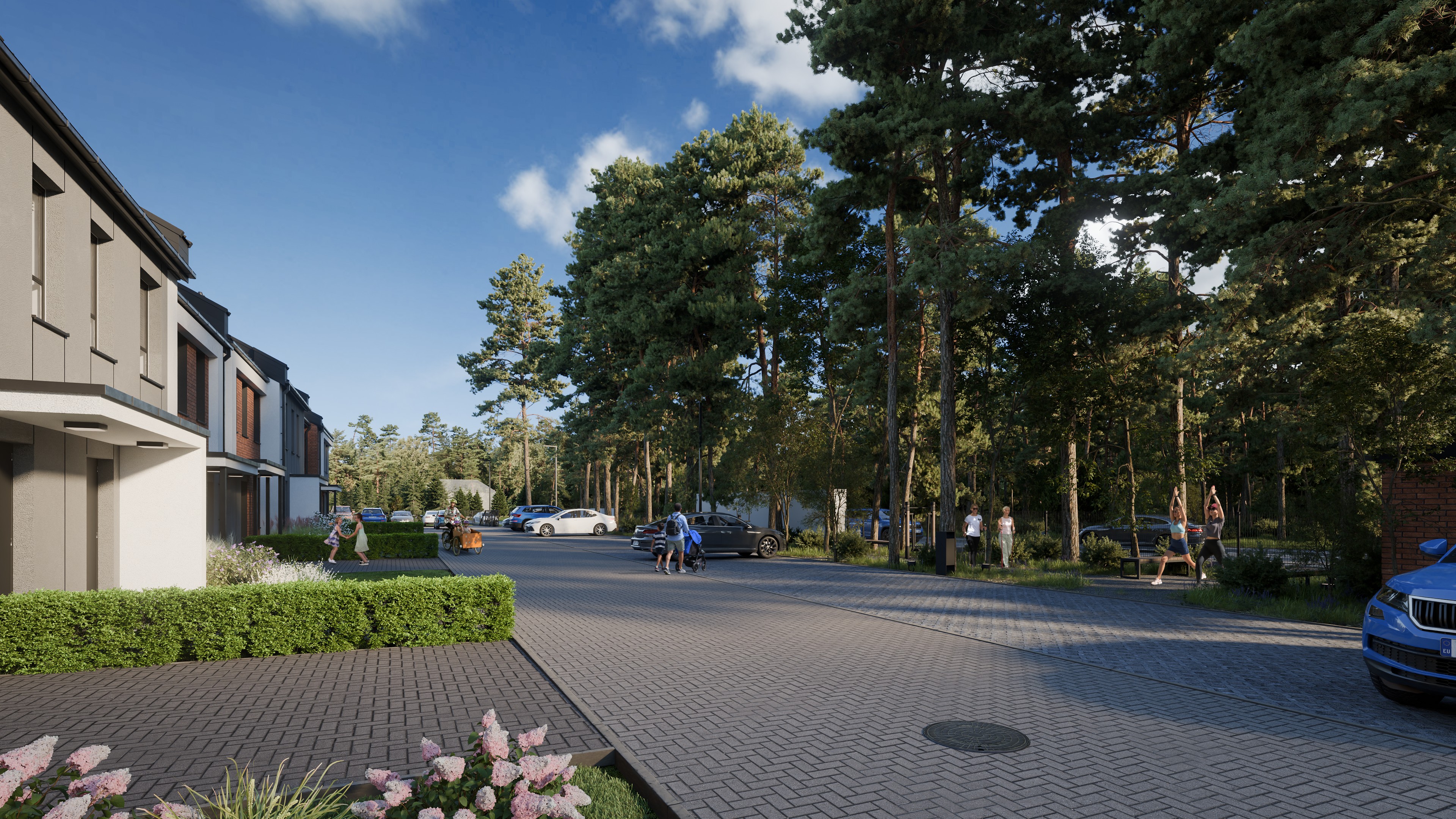Kameralne osiedle zapewnia spokój i wszystko, czego potrzeba, aby komfort życia stał się czymś więcej niż sloganem na ulotce. I las. Za płotem, nie jako dekoracja, tylko jako codzienność. Ścieżki, którymi można chodzić z psem, biegać rano, jeździć rowerem. Drzewa, które dają cień latem i szumią jesienią. Ptaki, których śpiew słyszysz przed domem.