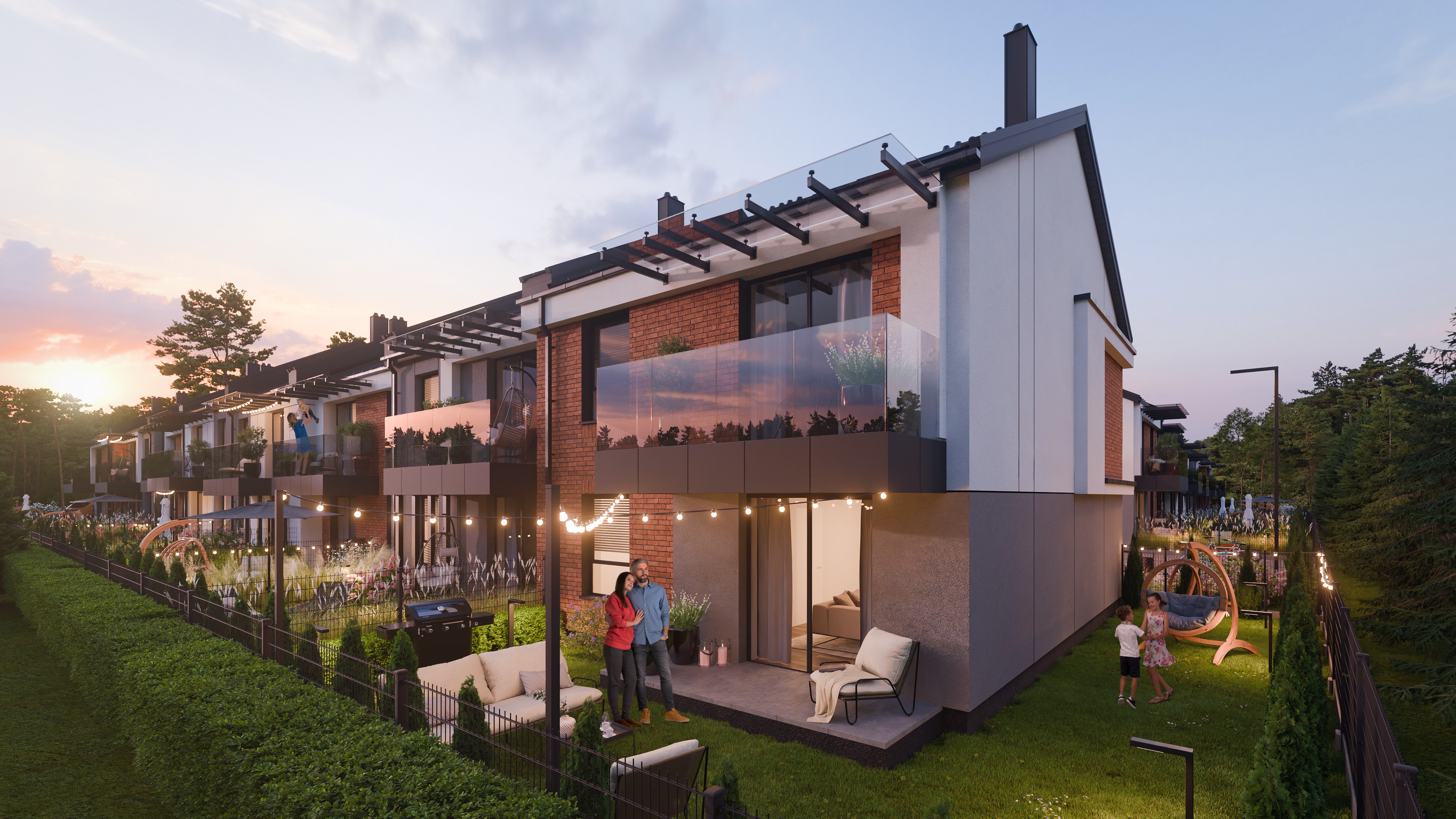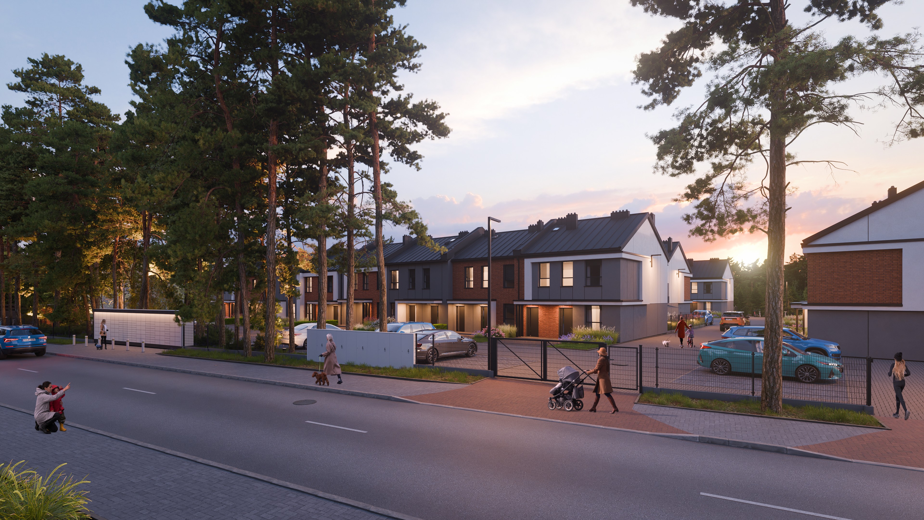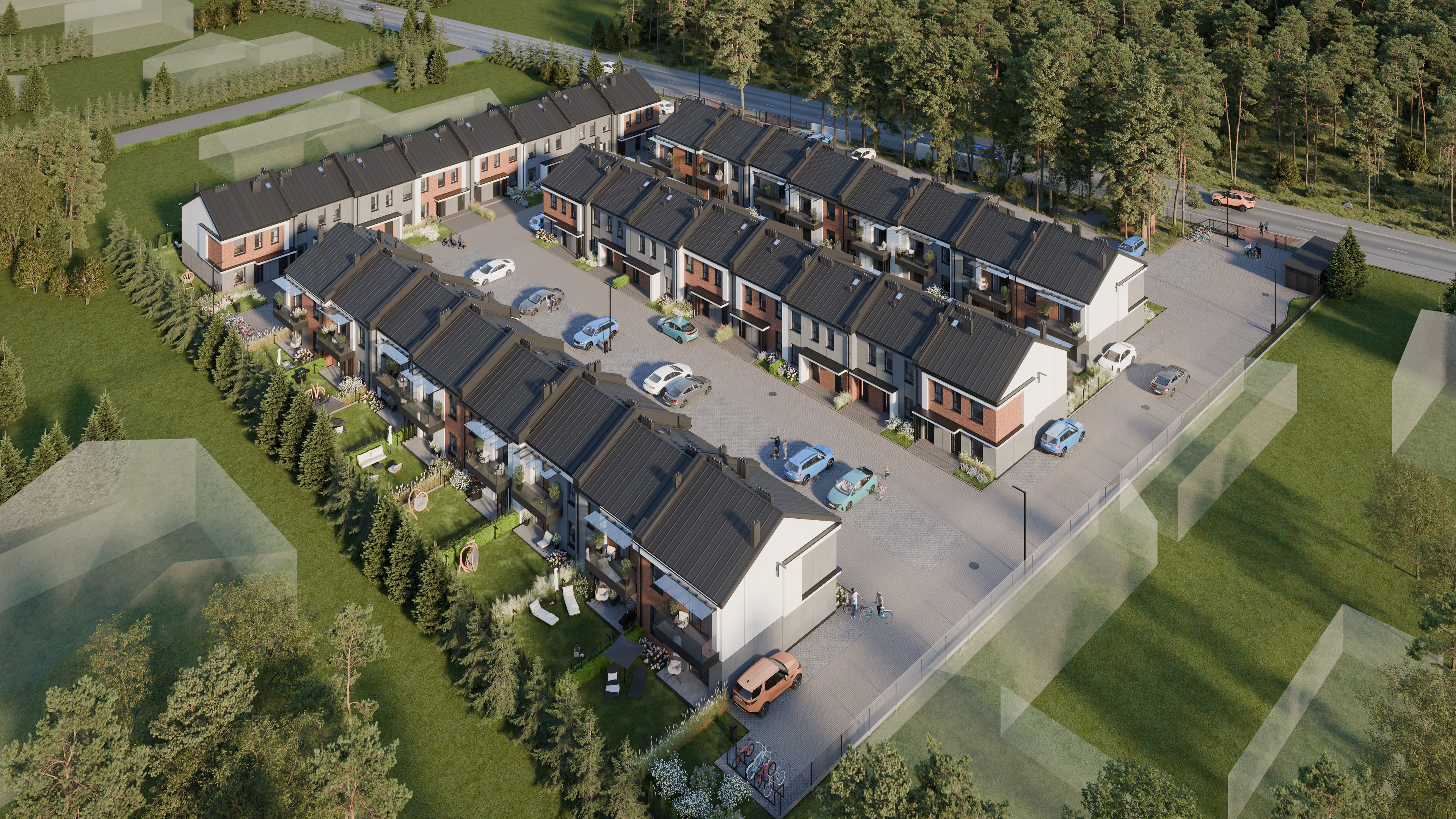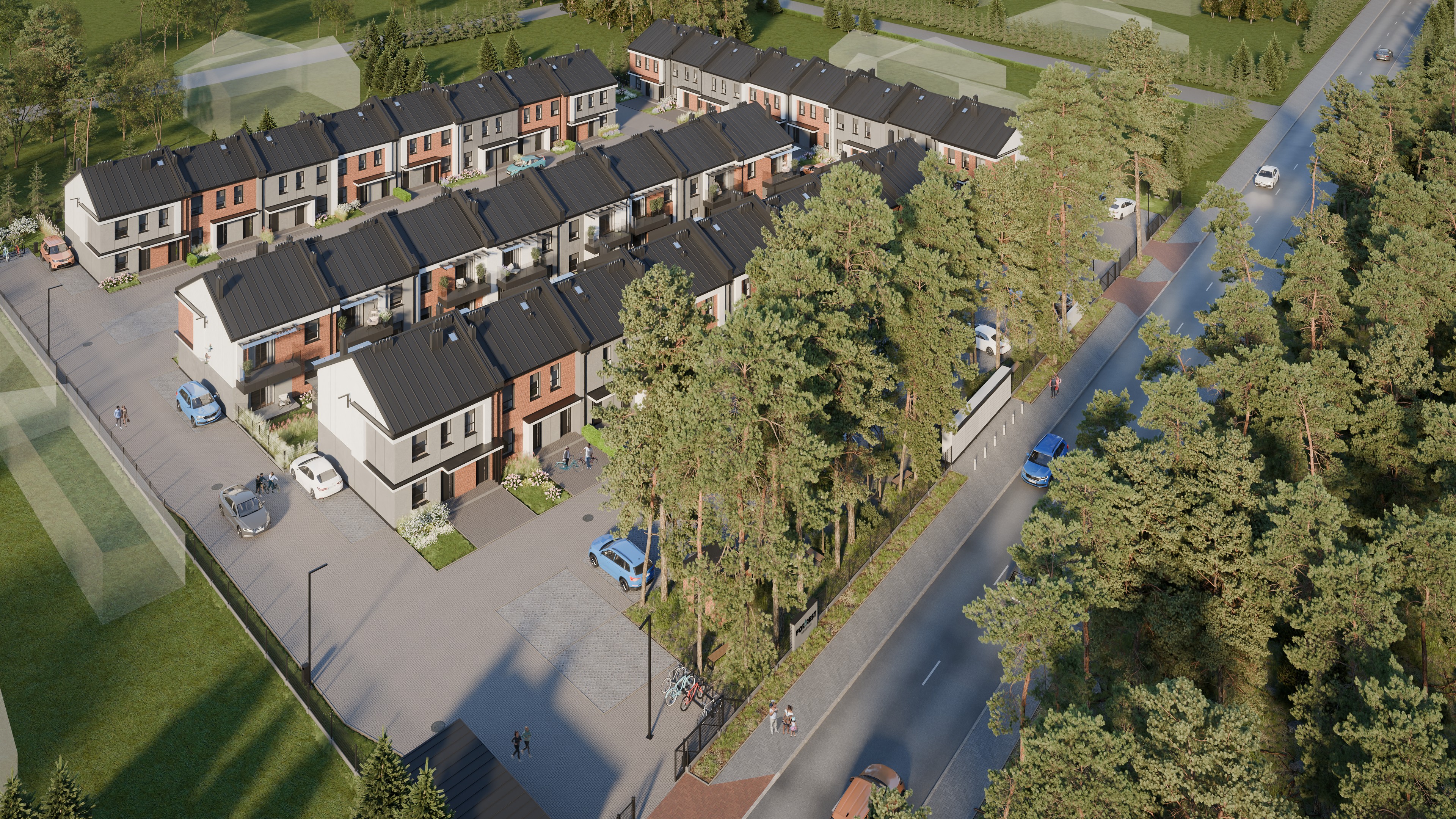 Kameralne osiedle zapewnia spokój i wszystko, czego potrzeba, aby komfort życia stał się czymś więcej niż sloganem na ulotce. I las. Za płotem, nie jako dekoracja, tylko jako codzienność. Ścieżki, którymi można chodzić z psem, biegać rano, jeździć rowerem. Drzewa, które dają cień latem i szumią jesienią. Ptaki, których śpiew słyszysz przed domem.