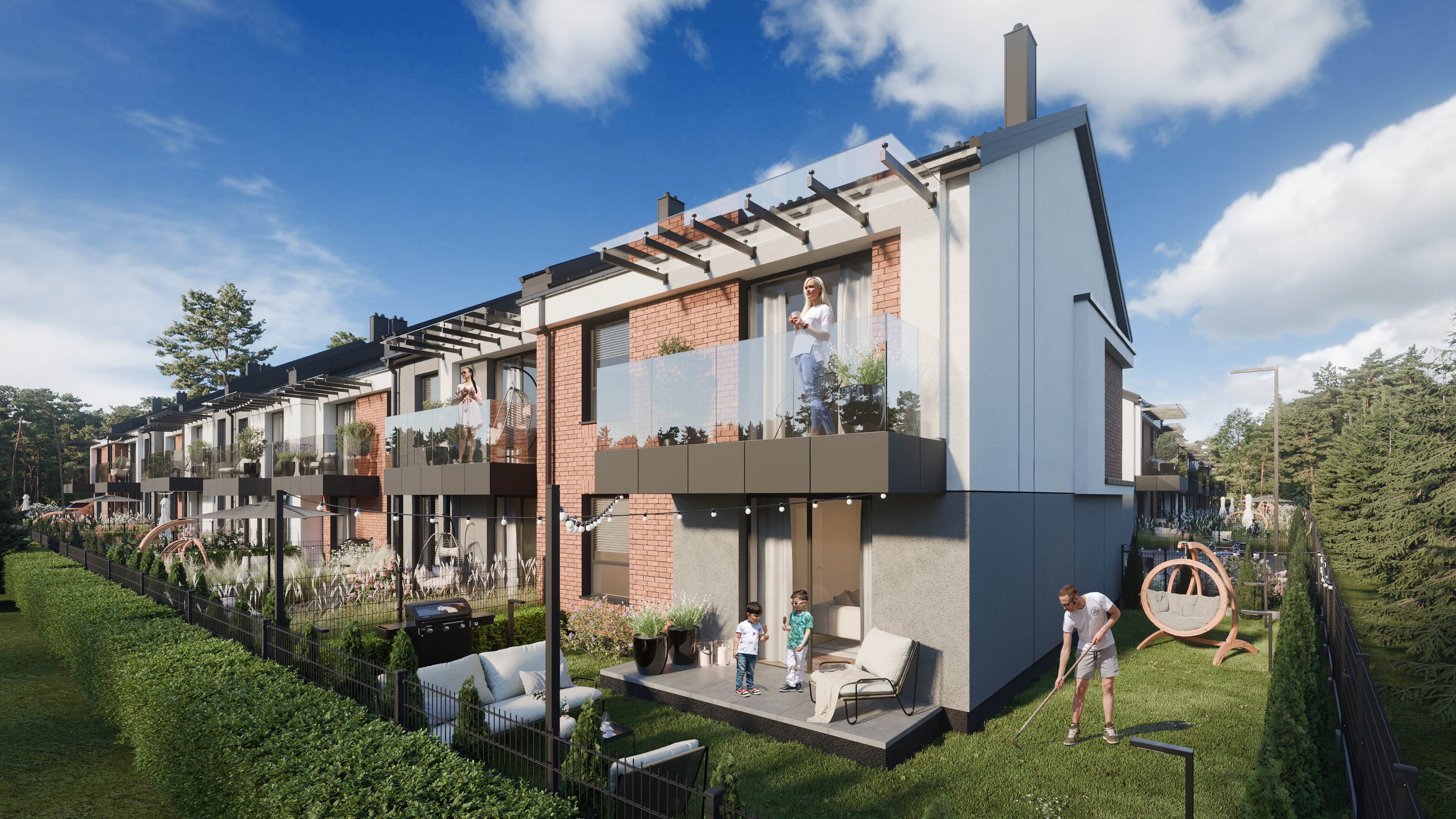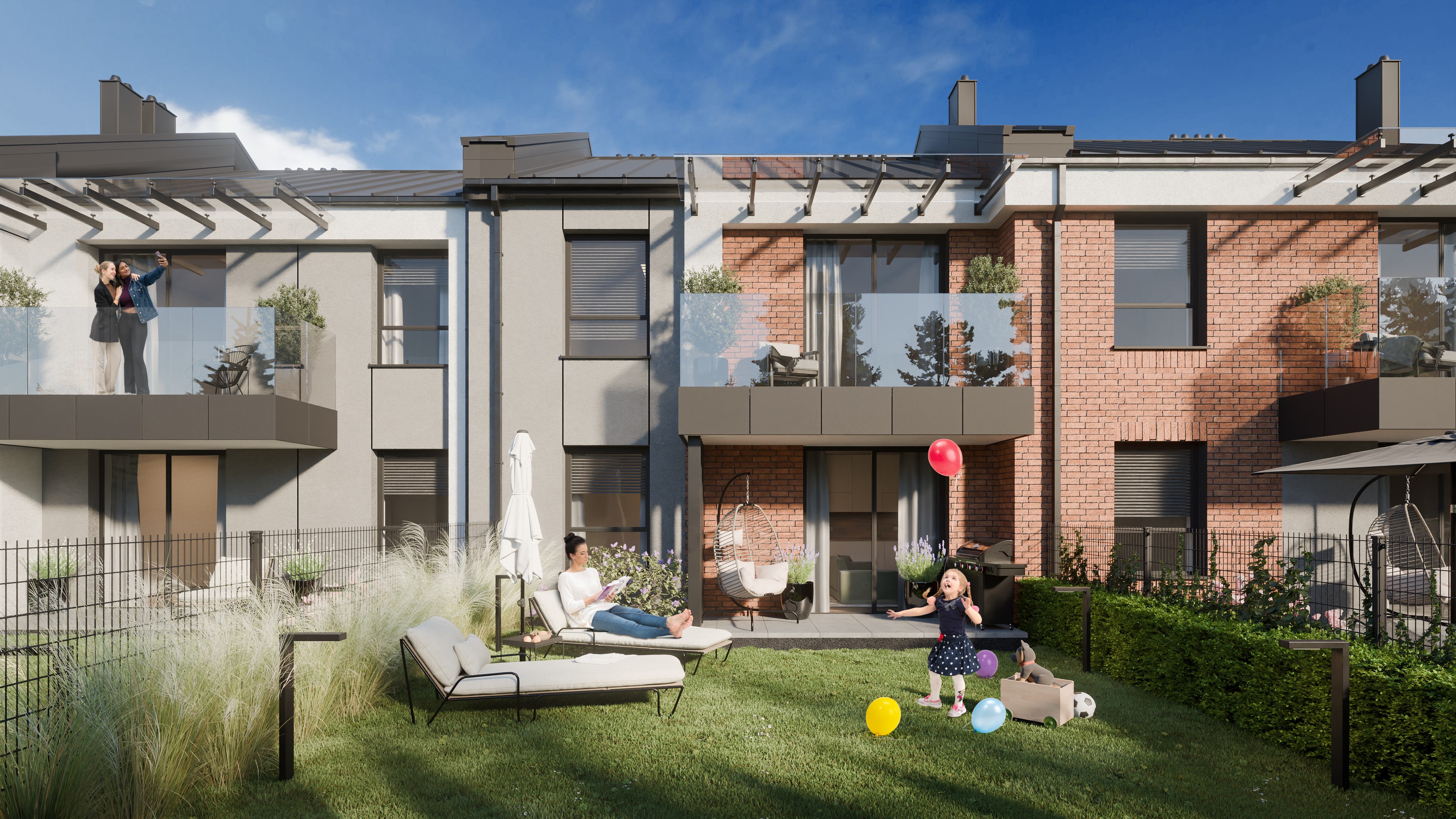 • Cenisz kameralną zabudowę i mniejszą skalę osiedla. Zabudowa szeregowa oznacza więcej prywatności – każde mieszkanie oddzielone jest własną, niezależną ścianą, co przekłada się na komfort akustyczny i spokojną codzienność.