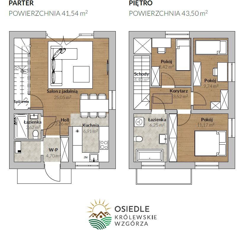 Parter Powierzchnia: 42,74 m2 Piętro I Powierzchnia: 45,07 m2 |