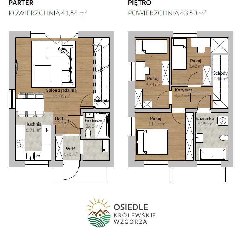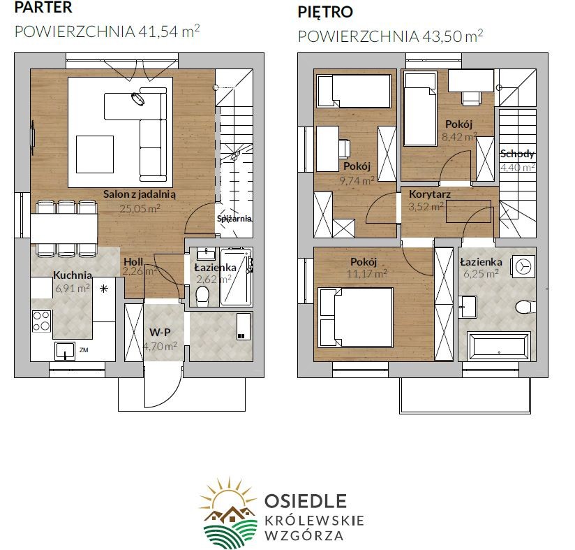 Osiedle Królewskie Wzgórza - miejsce, gdzie nowoczesne projektowanie spotyka się z harmonią i spokojem. Nasze osiedle oferuje przestronne, jasne domy szeregowe, które zostały zaprojektowane z myślą o tych, którzy cenią sobie jakość życia. Każda z rezydencji łączy w sobie elegancki design i funkcjonalność, oferując mieszkańcom przemyślane rozwiązania przestrzenne oraz dostęp do prywatnych ogródków.