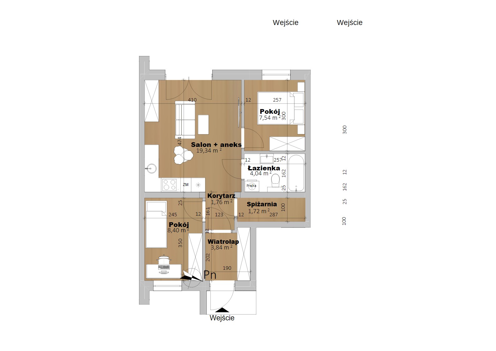 • możliwość elastycznej zmiany układu pomieszczeń z 4-pokojowego na 3-pokojowy