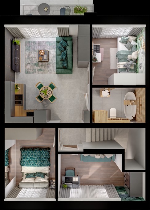 Na parterze z ogródkami - wyjście prosto z salonu na trawnik, miejsce na grilla, leżaki lub własne warzywa. Twój dom to miejsce odpoczynku, oaza, do której chcesz wracać po ciężkim dniu.