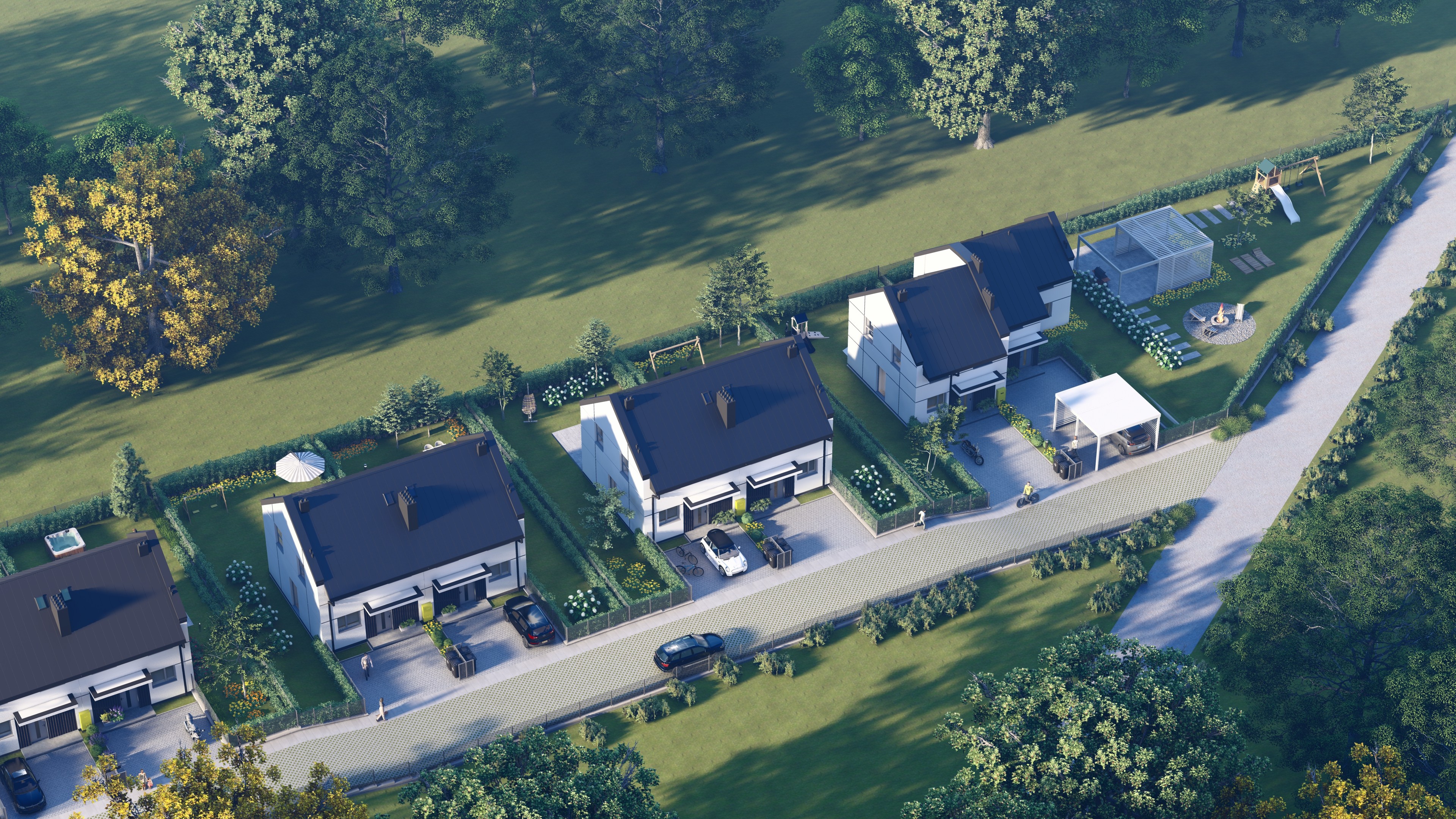 Osiedle Królewskie Wzgórza - miejsce, gdzie nowoczesne projektowanie spotyka się z harmonią i spokojem. Nasze osiedle oferuje przestronne, jasne domy w zabudowie bliźniaczej, które zostały zaprojektowane z myślą o tych, którzy cenią sobie jakość życia. Każda nieruchomość łączy w sobie elegancki design i funkcjonalność, oferując mieszkańcom przemyślane rozwiązania przestrzenne oraz dostęp do prywatnych ogródków.